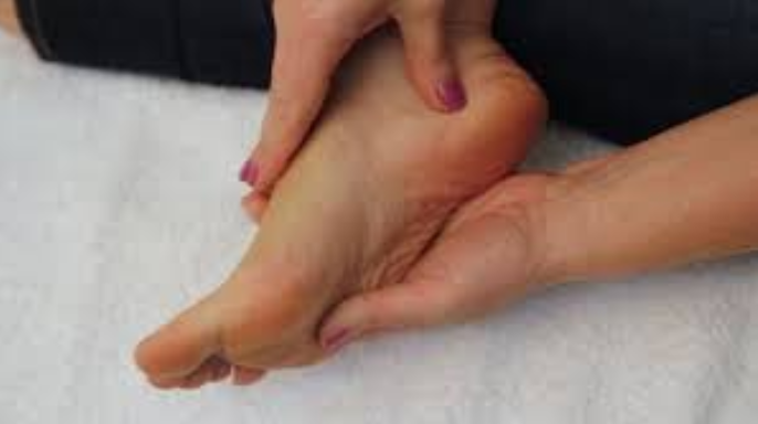 Put the web of your hand at the level of your ankle, right at the ankle bones.
